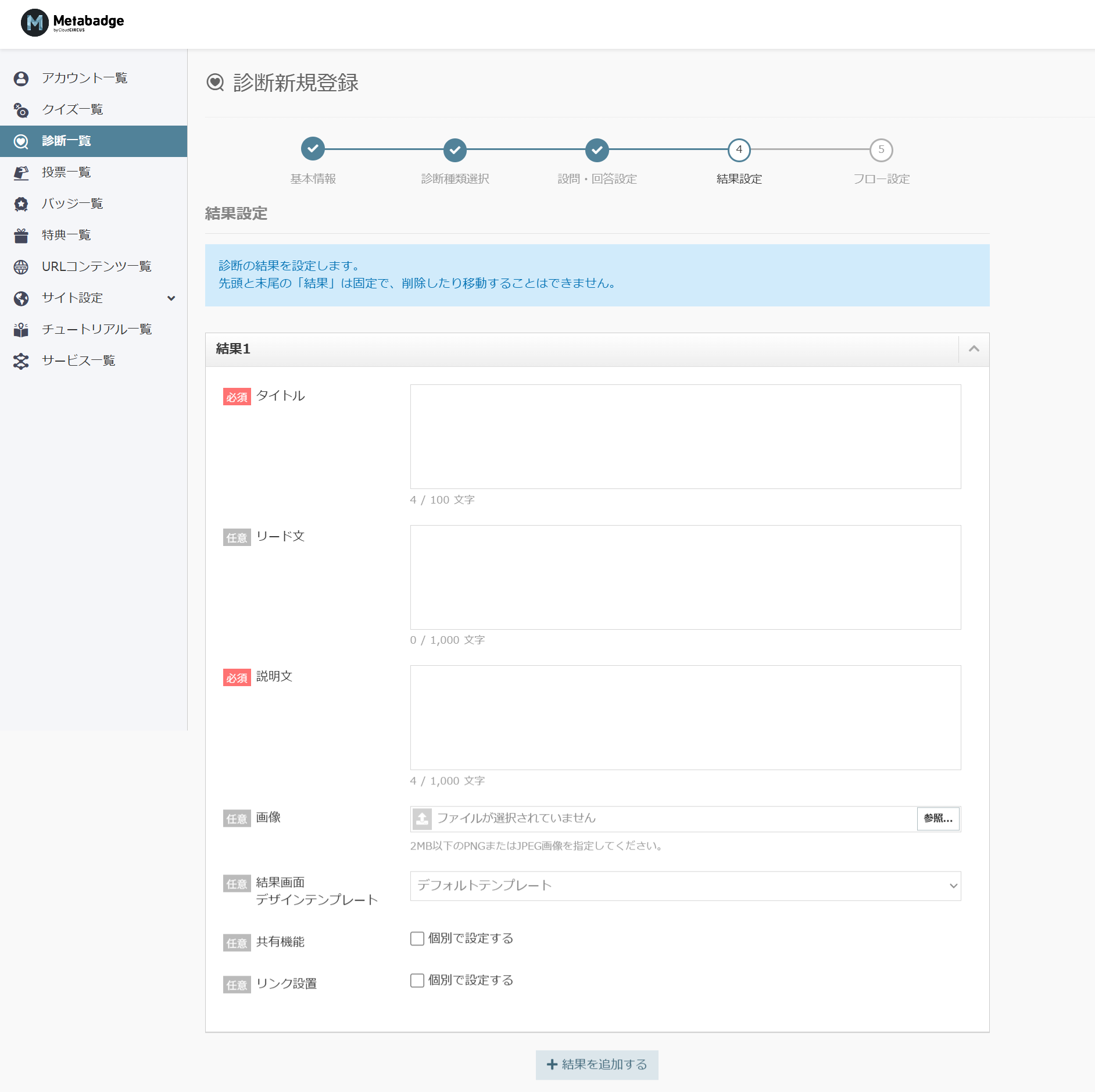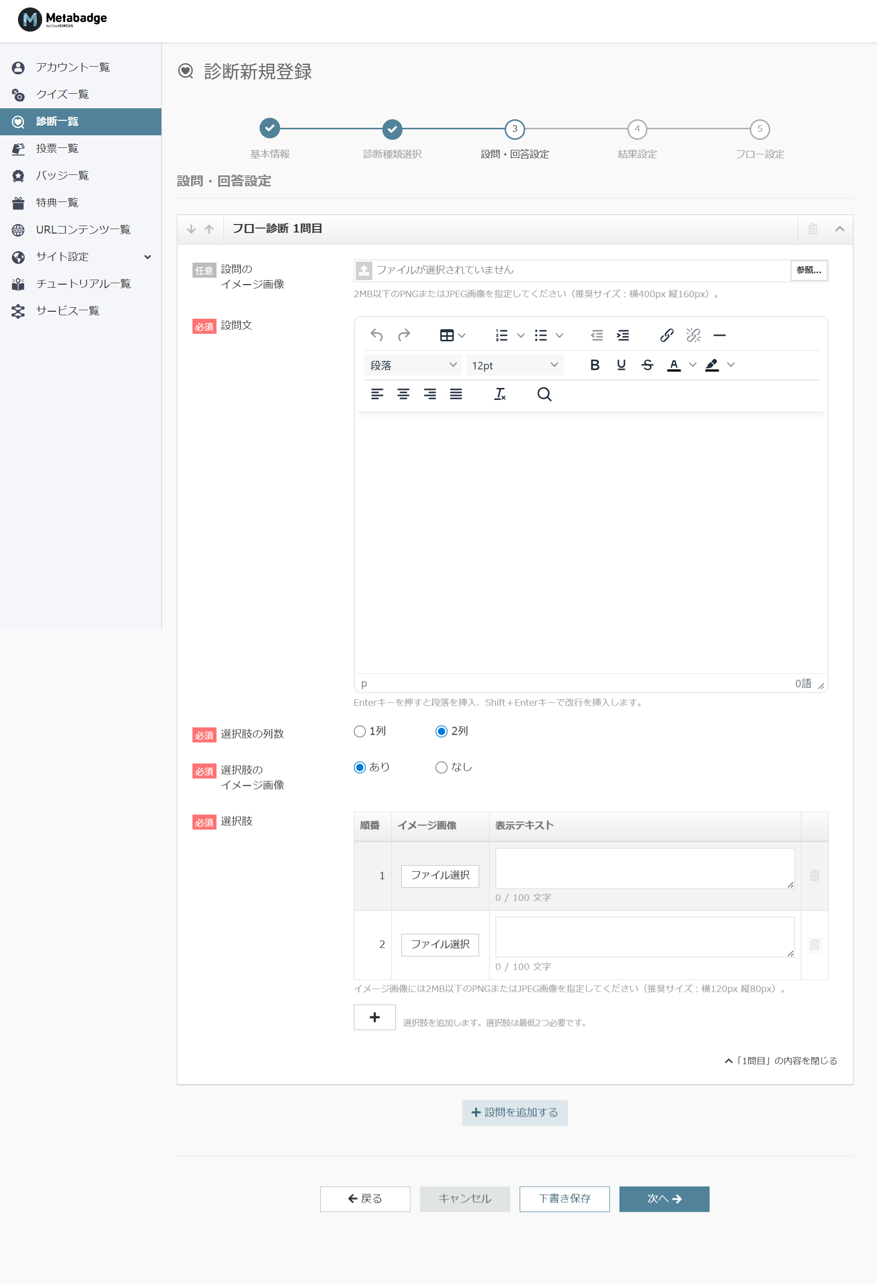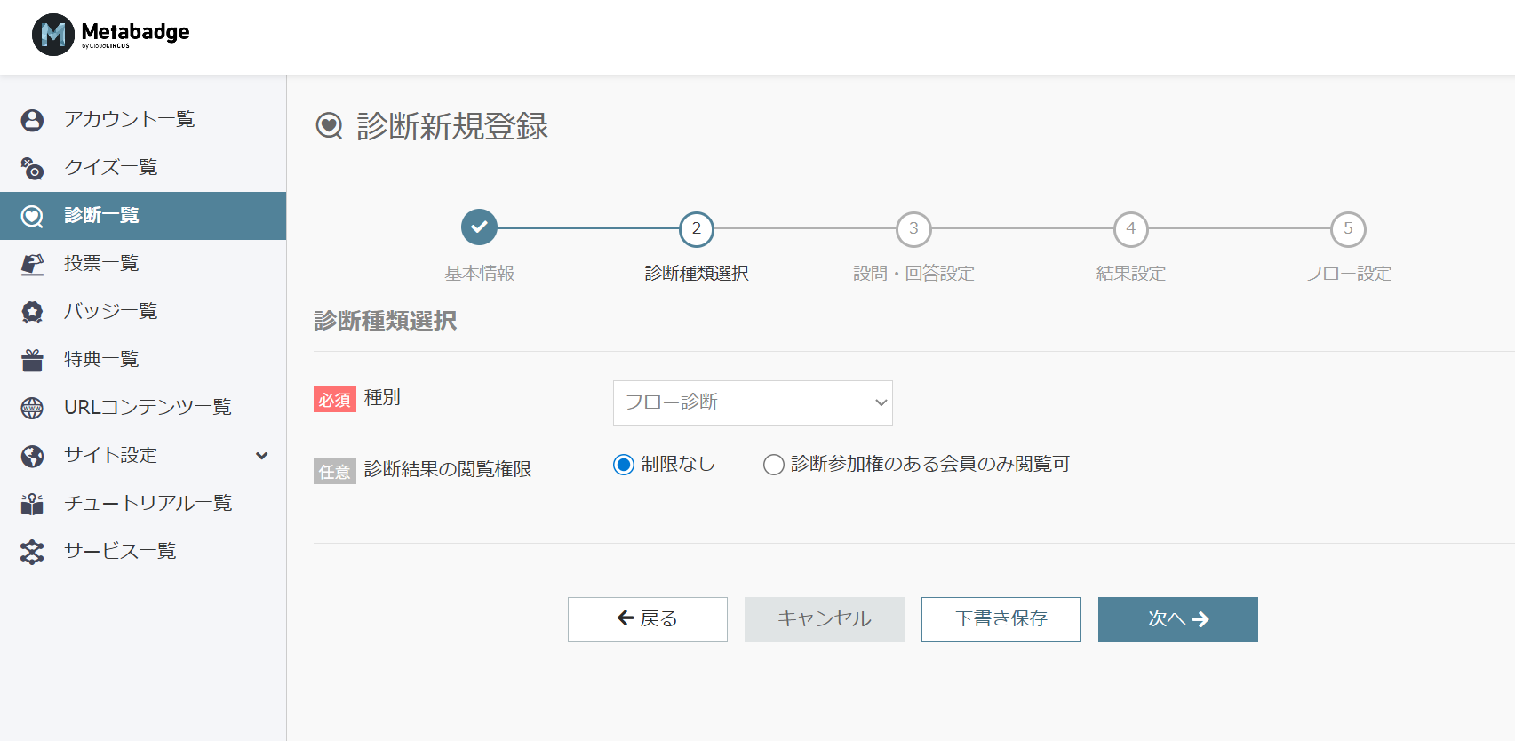 Metabadgeにて新規の診断を作成するには、下記手順を行っていただく必要がございます。