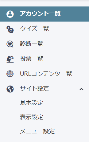 メニューバー内にある「サイト設定」を選択し、プルダウンを開きます。